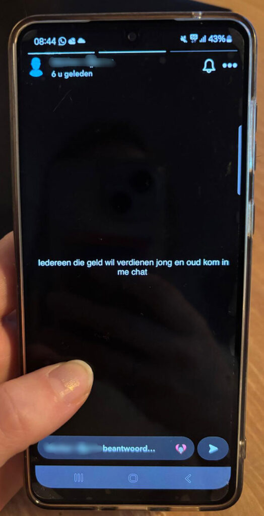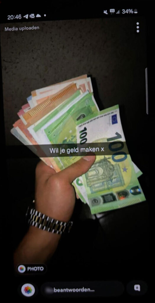 Toen ik met dit werk begon, vond ik ‘ronselen’ een vaag begrip. Het betekent dat jongeren door criminelen benaderd worden om mee te doen aan illegale activiteiten. Maar hoe gebeurt dat precies? Ik dacht vooral aan sociale trucs waarbij jongeren worden gemanipuleerd. Die manipulatie komt zeker voor, maar online gebeurt ronselen vaak veel directer. Tussen gewone berichten, bijvoorbeeld in groepen waar mensen een tweedehands fiets zoeken, verschijnen dit soort oproepen: